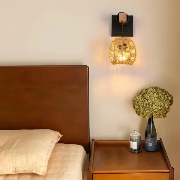 Applique murale en rotin style bohème avec interrupteur, vendue sans ampoule